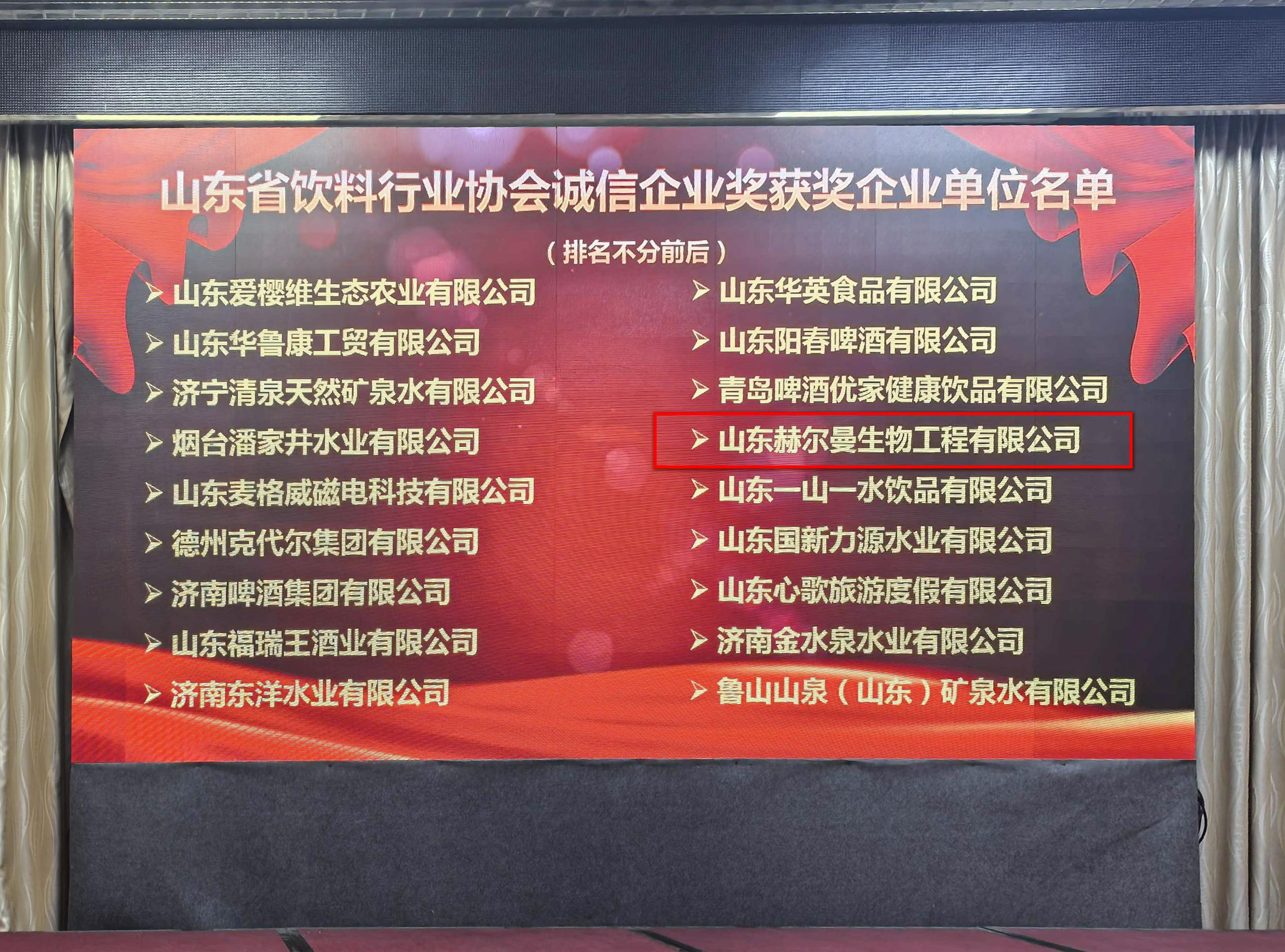 2025年10月23日,山东省饮料行业协会隆重召开行业会议,山东赫尔曼作为协会副理事长单位出席会议,并荣膺本年度“省饮料行业品牌价值贡献奖”与“诚信企业奖”两项重要荣誉。